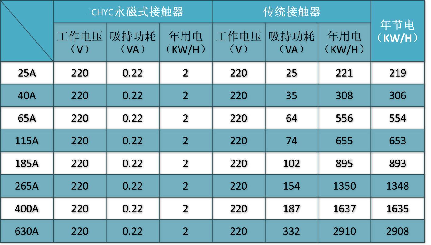 選擇CHYC永磁式接觸器 效益分析表