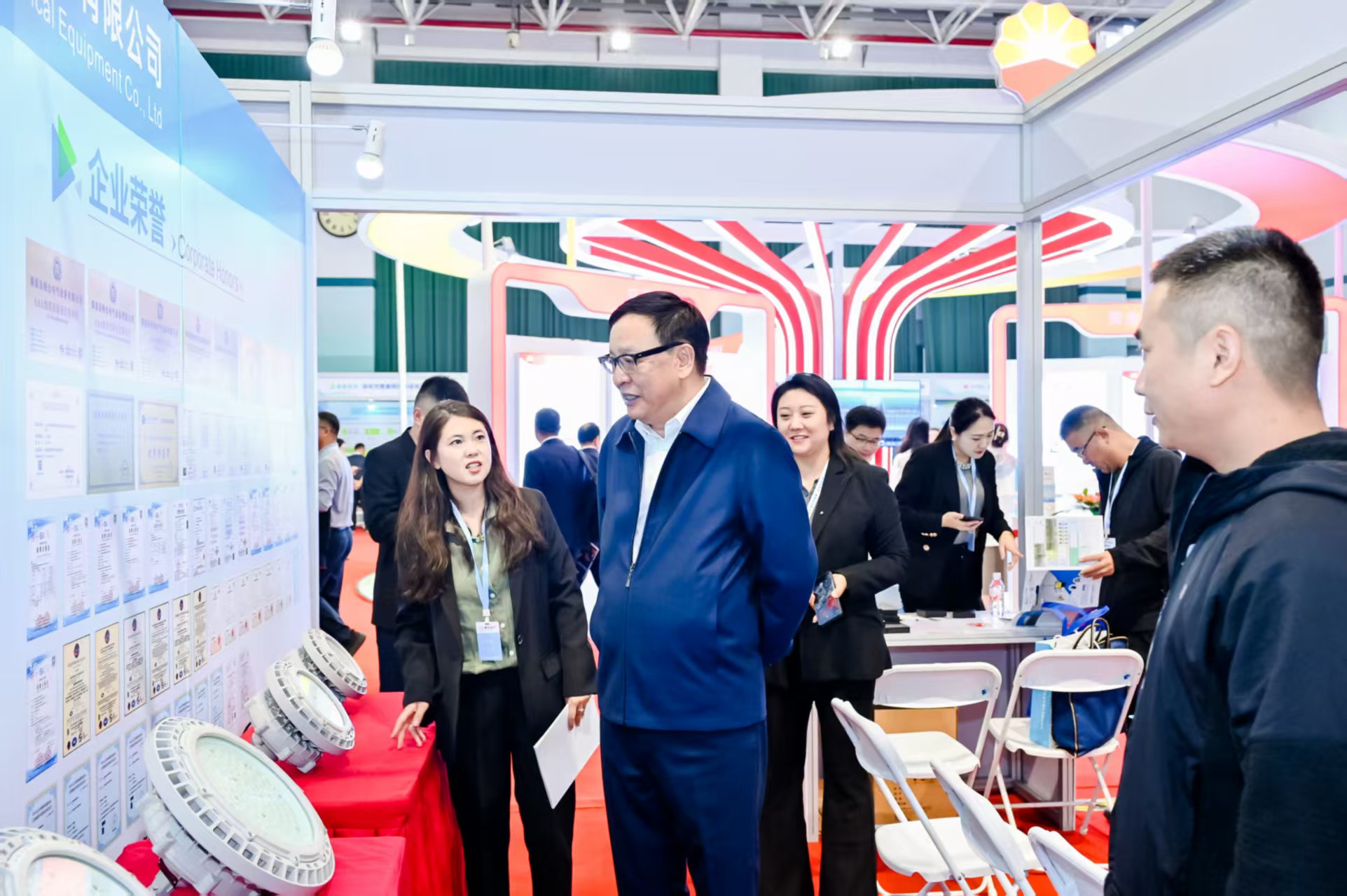 本報發(fā)自第五屆中國石油健康、安全與環(huán)保(HSE)技術(shù)交流大會現(xiàn)場訊 今日,在展會熱烈進(jìn)行期間,中國石油學(xué)會副理事長兼秘書長、我國石油化工領(lǐng)域權(quán)威專家李俊軍親臨秦皇島暢合電氣設(shè)備有限公司展臺觀摩指導(dǎo),對該公司展出的HBCH系列防爆燈具及工業(yè)電氣解決方案給予高度評價。